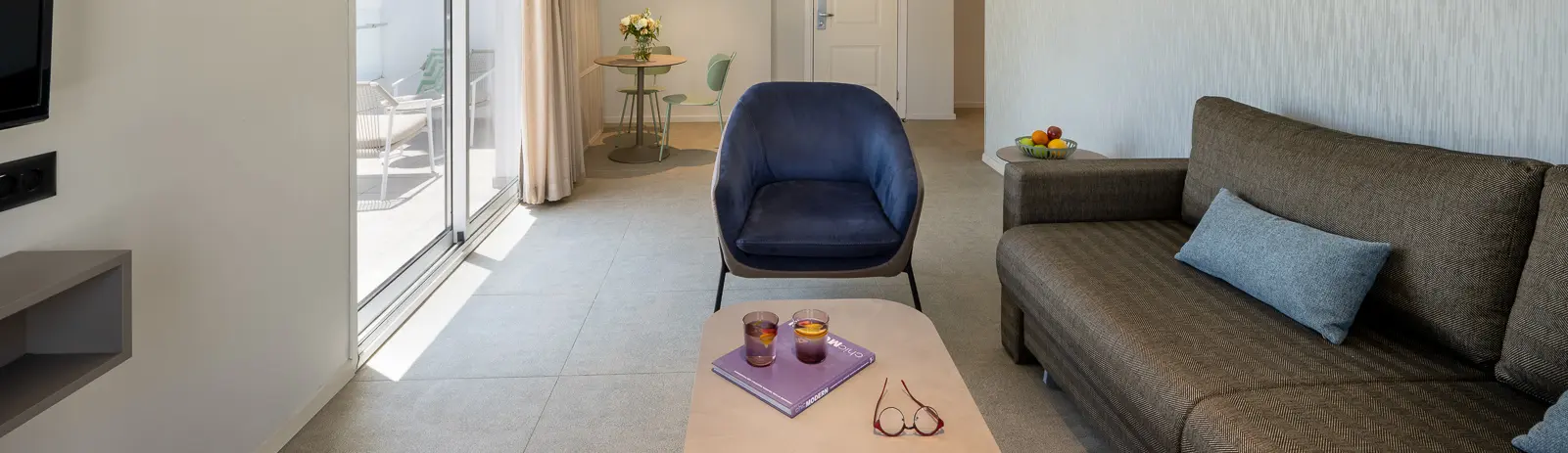 סוויטה מקסימה למשפחות וזוגות, עם מרפסת שמשקיפה למי הבריכה הכחולים. יש בה כל מה שצריך לנופש מושלם: חדר שינה עם מיטה זוגית נוחה, סלון עם ספה זוגית נפתחת וחדר רחצה מפנק.