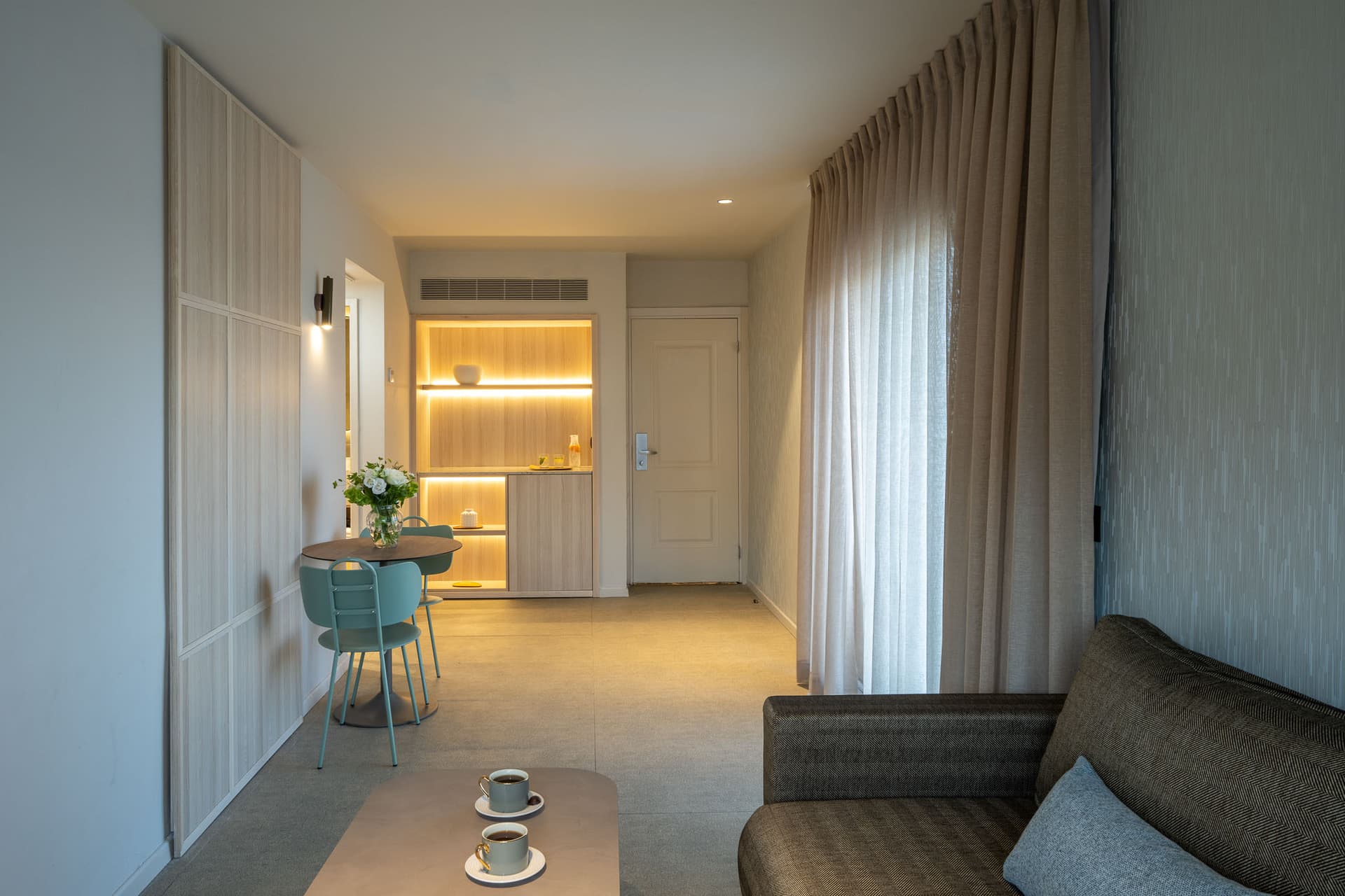 סוויטת גדולה במיוחד עם מרפסת שמשקיפה לבריכה, ומאפשרת למשפחות או קבוצות חברים ליהנות ממרחבים וחוויית אירוח מפנקת. יש בה שני חדרי שינה, בכל אחד מהם מיטה זוגית גדולה ונוחה, סלון עם ספה זוגית נפתחת, וחדר רחצה מרווח.