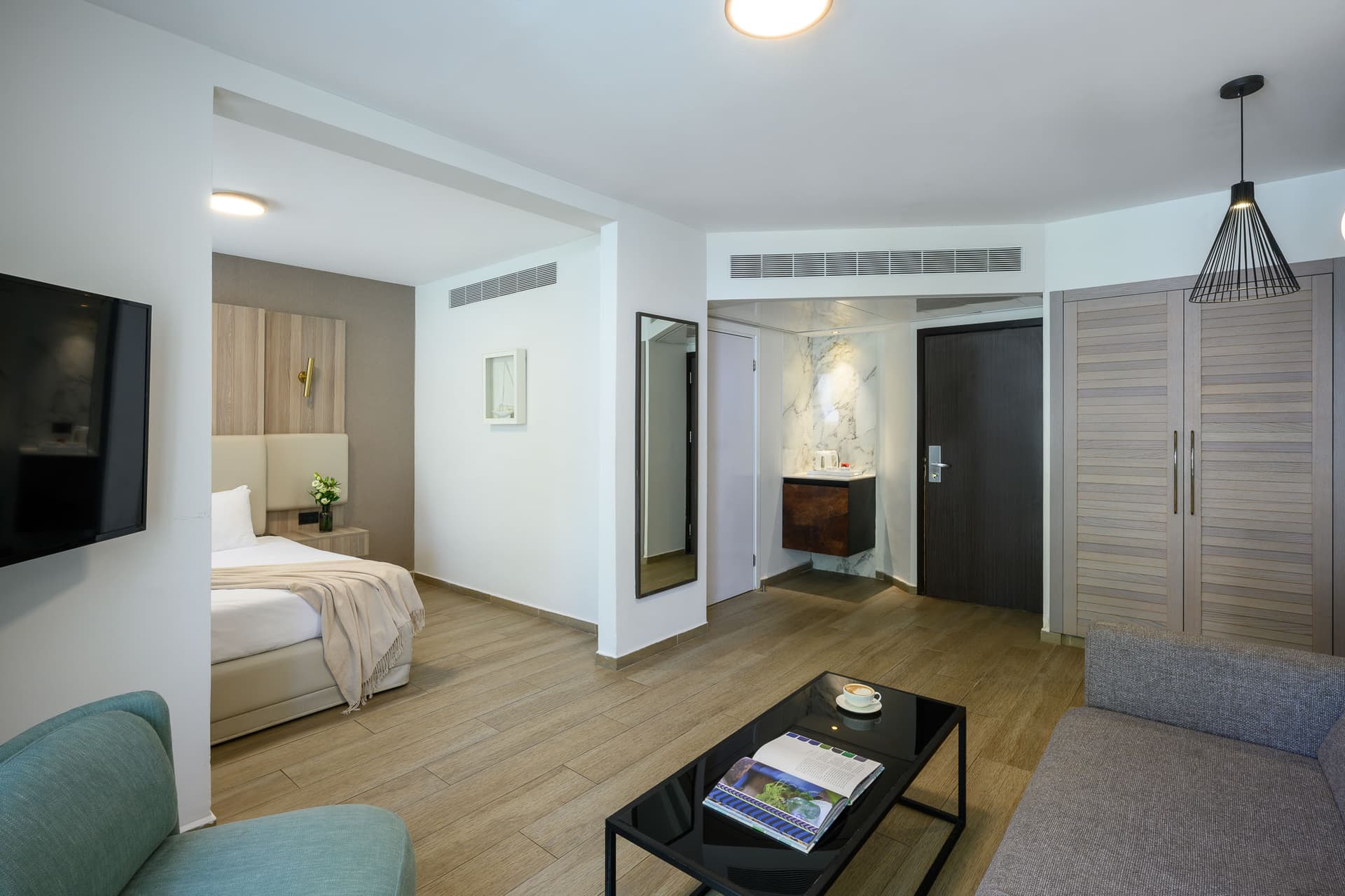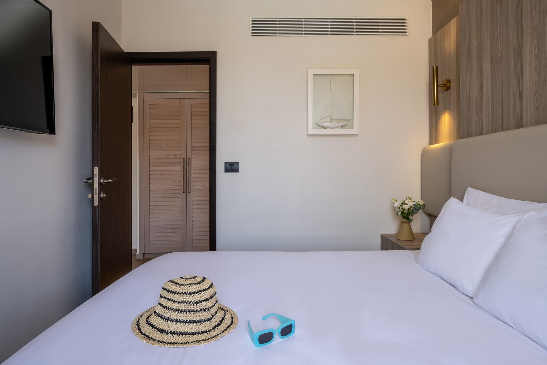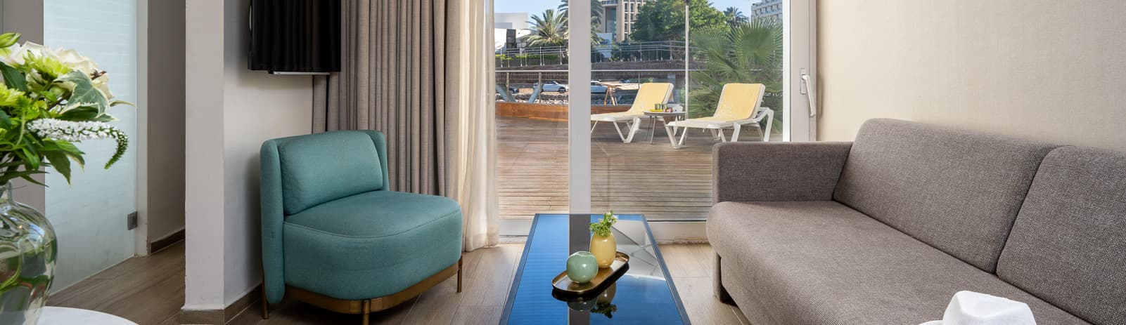 סוויטה גדולה למשפחות גדולות ולמי שאוהבים מרחבים. יש בה שני חדרי שינה, סלון עם ספה נפתחת, חדר רחצה מרווח ומרפסת דק ענקית עם נוף למרינה. במרפסת יש גם ג'קוזי פרטי, מיטות שיזוף ופינת ישיבה לחופשה מרגיעה