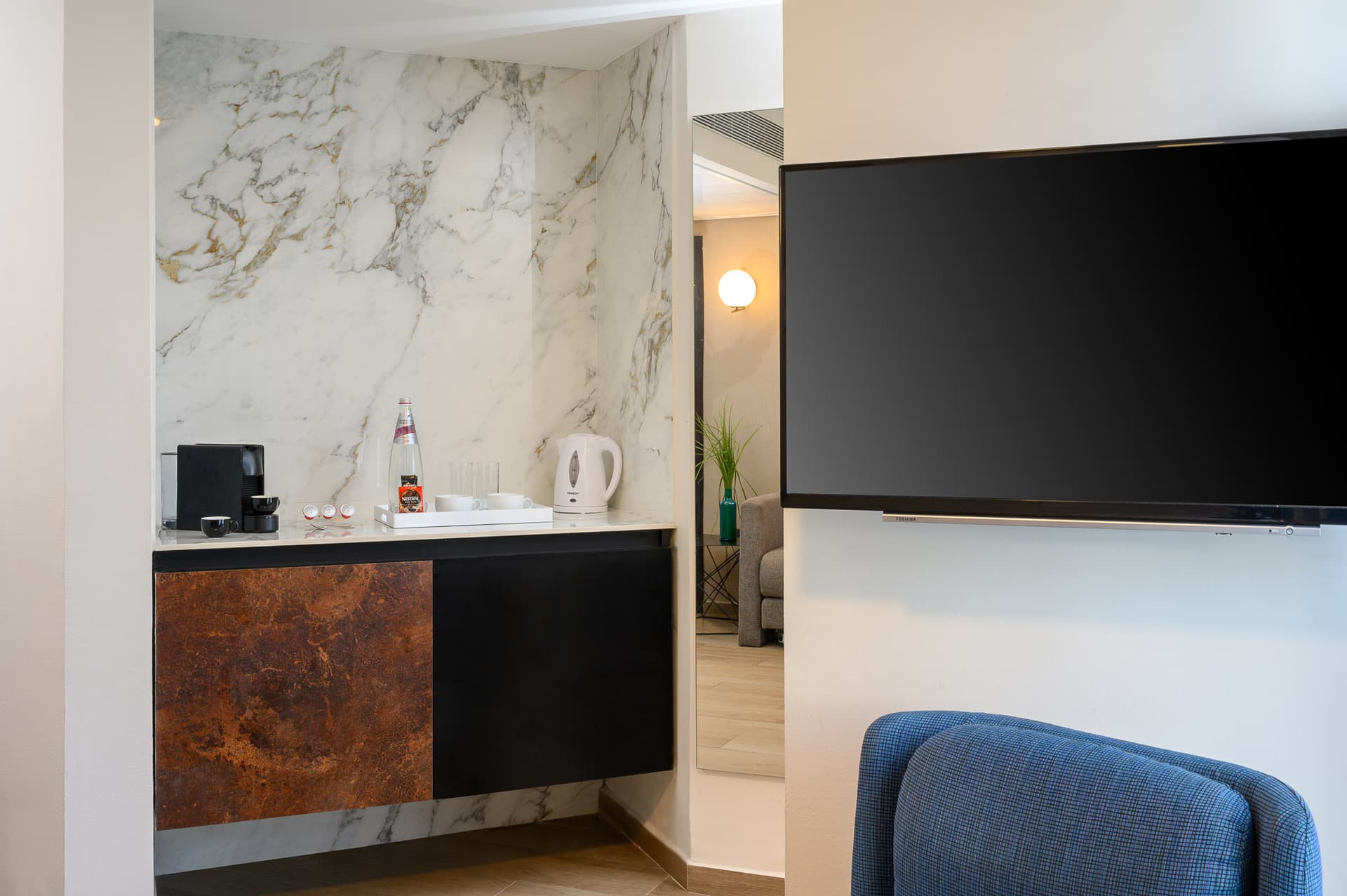 סוויטה מרווחת במיוחד עם מרפסת עמידה, שאפשר לארח בה משפחה עם כמה ילדים או קבוצת חברים. יש בה חדר שינה עם מיטה זוגית גדולה, סלון עם ספה זוגית נפתחת, חדר רחצה ומרפסת עמידה עם נוף לעיר