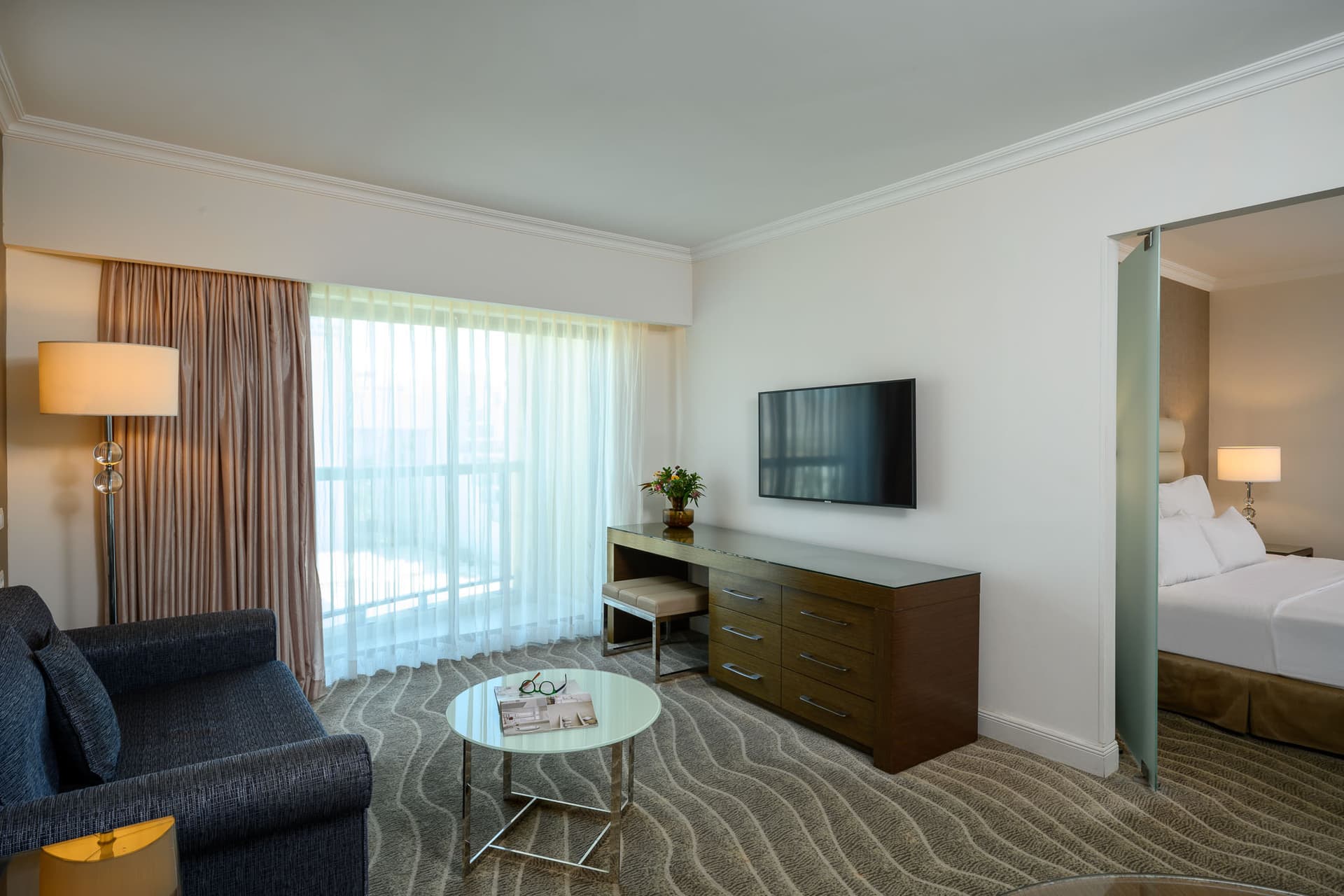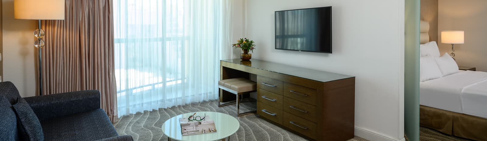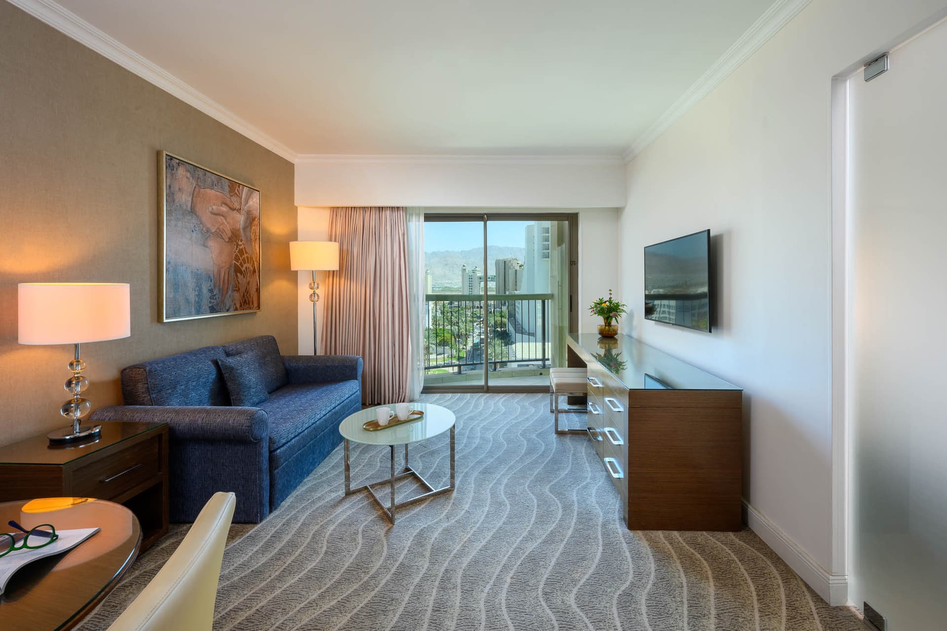 חדר מרווח עם נוף מדהים בקומה 8 של המלון. בחדר יש מיטה זוגית גדולה, שולחן עבודה, חדר רחצה מרווח, וכל התוספות לחופשה לנפלאה. בסלון יש ספת יחיד נפתחת ומרפסת עמידה עם נוף לים. בהזמנה במחיר מלא נכנסים חינם לטרקלין אקזקיוטיב ולספא (18+, לא כולל טיפולים).